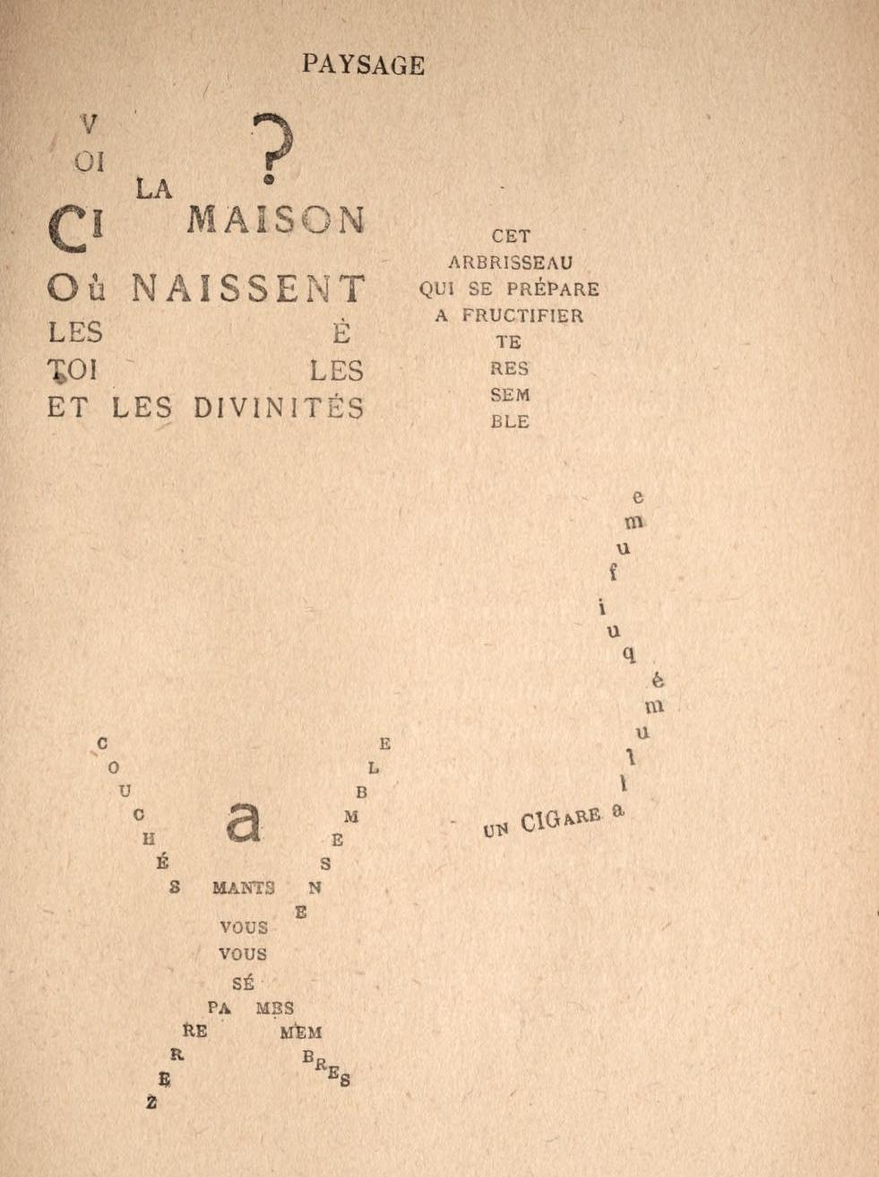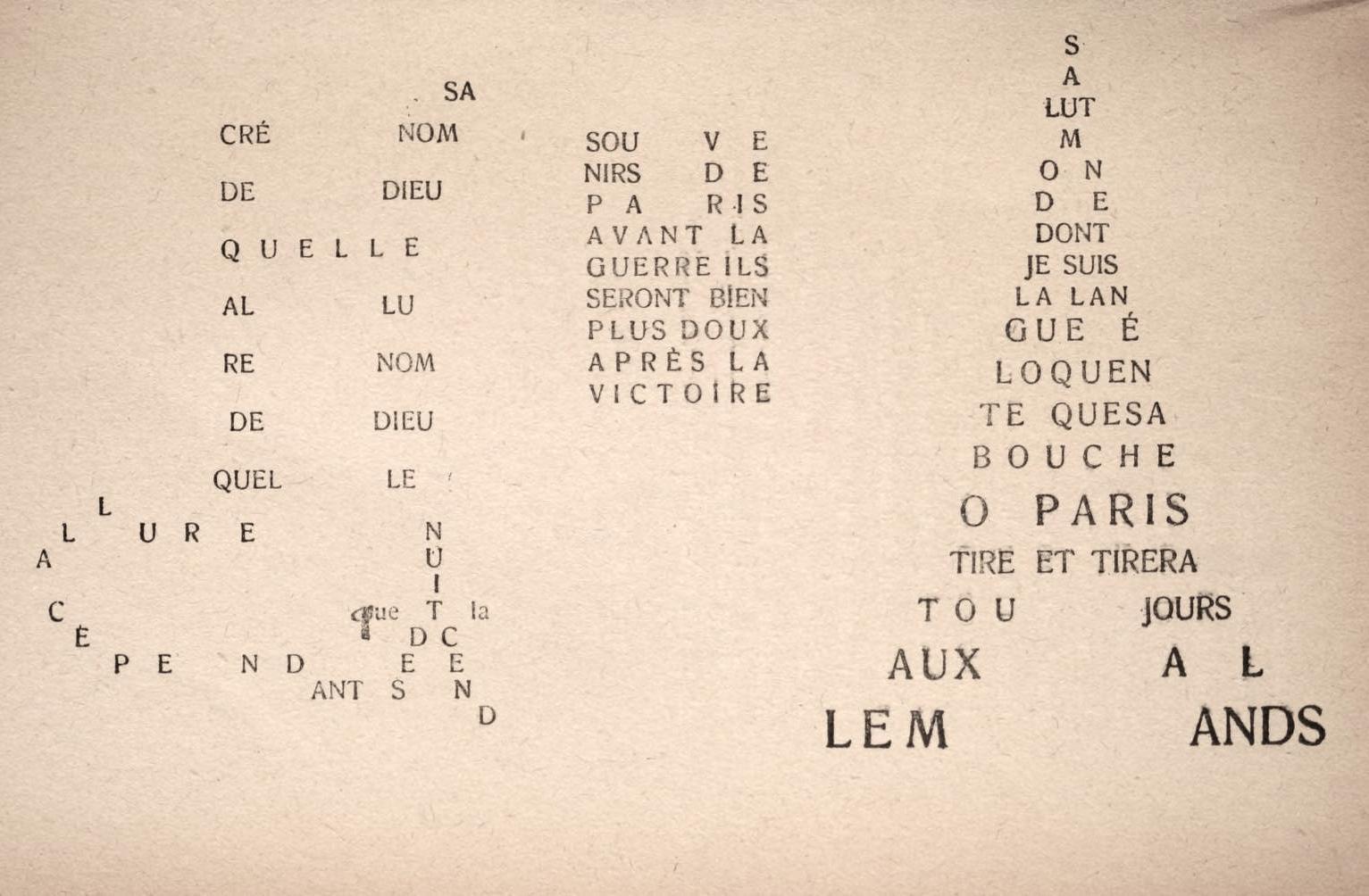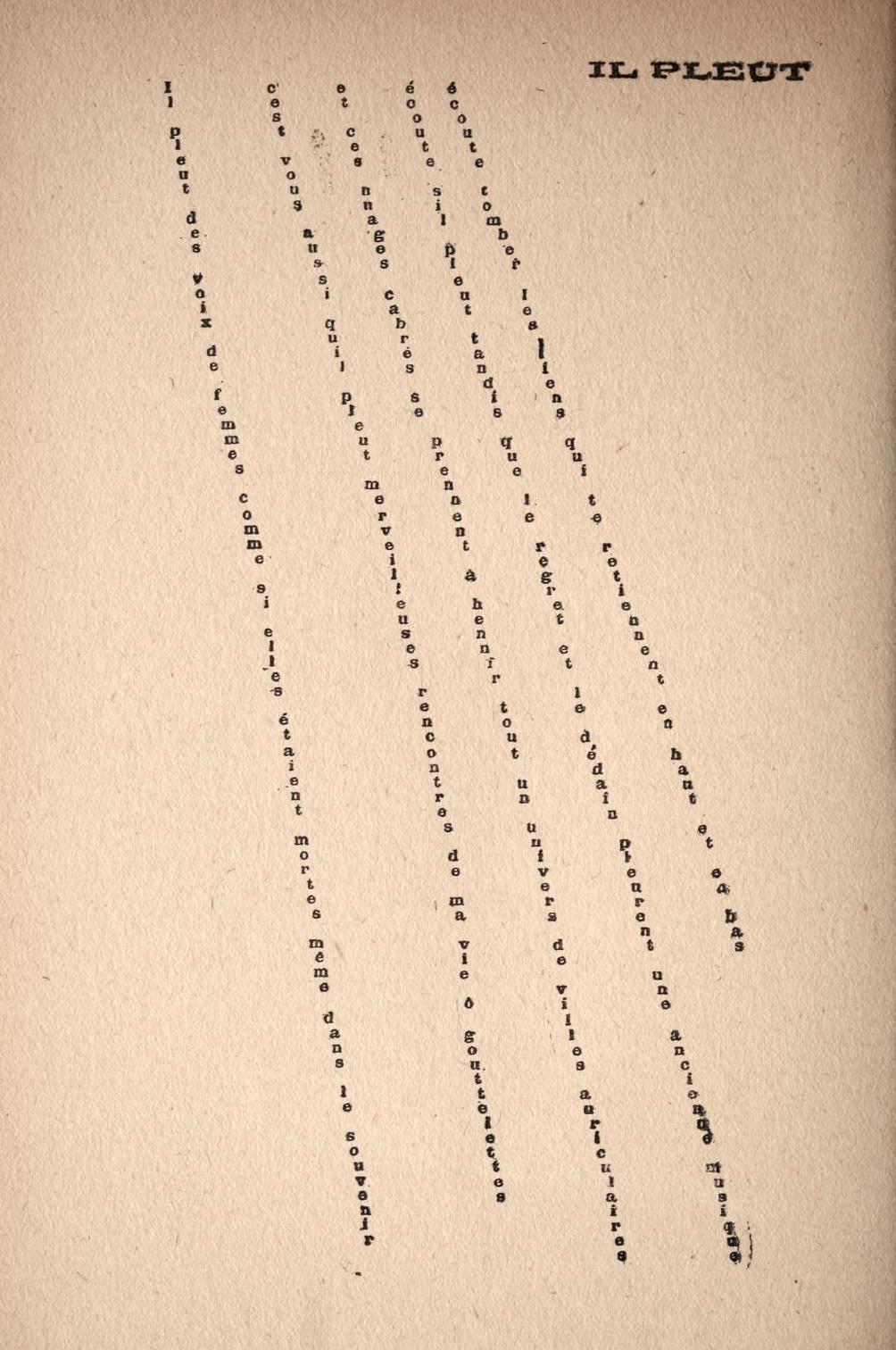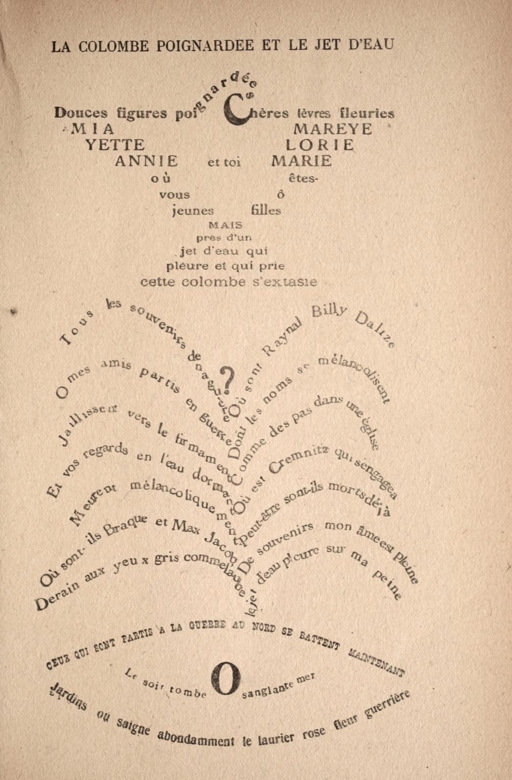 #Onthisday in 1918, just days before end of #WW1, French poet Apollinaire (weakened by a shrapnel wound) died in the Spanish flu epidemic. Later that year Calligrammes: Poems of Peace & War was published, a collection of his concrete/visual poems https://publicdomainreview.org/collection/apollinaire-s-calligrammes-1918 #OTD